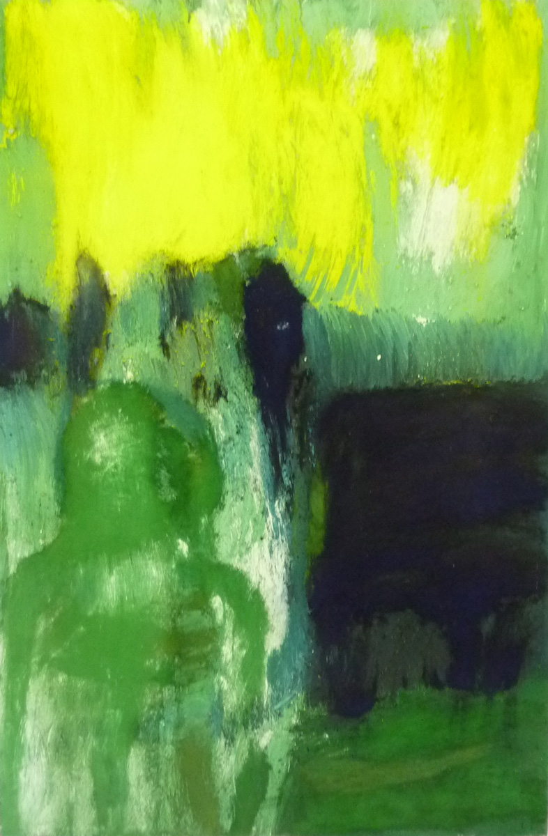 Toutefois il ne s’agit pas d’une peinture figurative : Anne-Marie Gbindoun, en fait, avec la délicatesse et l’équilibre qui lui appartiennent arrive à s’éloigner d’une peinture purement figurative. La figure humaine est toujours présente mais elle demande d’être reconnue et cherchée entre les signes scripturaux de ses pages et les couches de peinture de ses toiles.